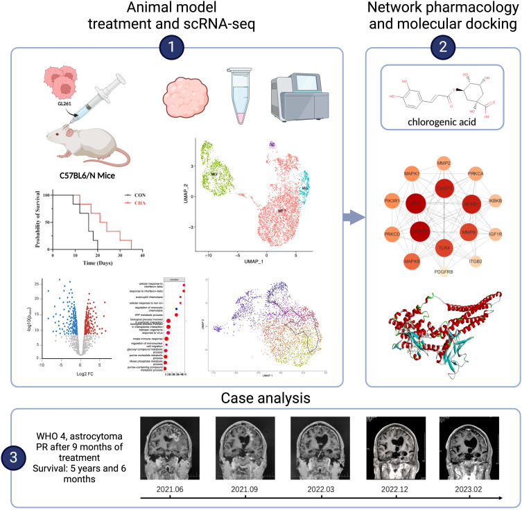 這篇論文研究了研究綠原酸(Chlorogenic Acid, CHA)對膠質(zhì)瘤(Glioma)免疫微環(huán)境的調(diào)節(jié)作用,以及其在小鼠模型和臨床實踐中的潛在應用。研究通過單細胞RNA測序(scRNA-seq)揭示了膠質(zhì)瘤相關巨噬細胞(Tumor-Associated Macrophages, TAMs)的亞群和功能特征,并探討了CHA對免疫微環(huán)境的調(diào)節(jié)作用及其臨床應用潛力。
