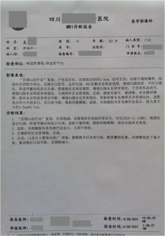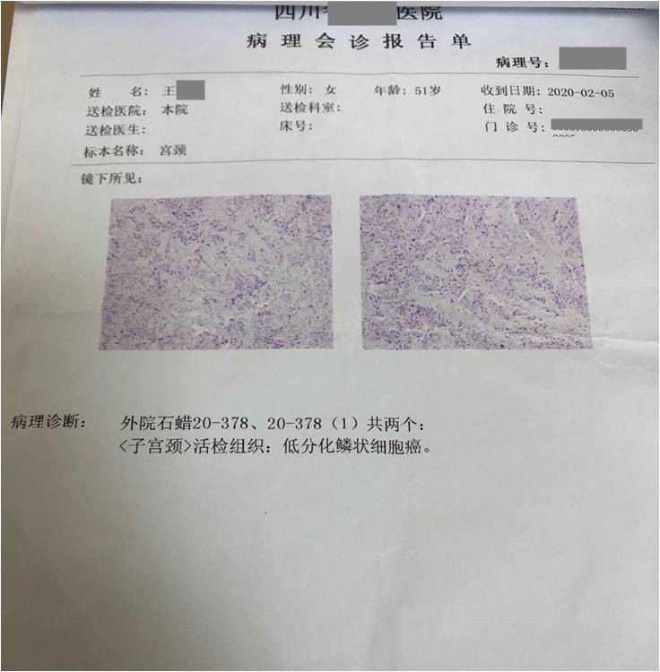 患者用藥前病理診斷:子宮頸低分化鱗狀細(xì)胞癌;隨后進(jìn)行化療、放療,并同步使用注射用綠原酸;聯(lián)合治療8個(gè)月后停止化療,開始單獨(dú)使用綠原酸至2022年1月。用藥期間,多次復(fù)查,病情穩(wěn)定向好,無復(fù)發(fā)和轉(zhuǎn)移跡象,血生化指標(biāo)正常,生活狀態(tài)良好。